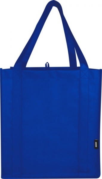 Recyklovaná nákupná taška Liberty s certifikáciou GRS vyrobená z odolného netkaného RPET má podpornú spodnú dosku, vďaka ktorej je univerzálna a pevná. Nákupná taška má veľkú hlavnú priehradku a uši s dĺžkou 25 cm. Objem: 29 litrov. Nosnosť do 12 kg.