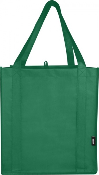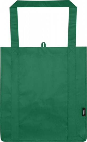Recyklovaná nákupná taška Liberty s certifikáciou GRS vyrobená z odolného netkaného RPET má podpornú spodnú dosku, vďaka ktorej je univerzálna a pevná. Nákupná taška má veľkú hlavnú priehradku a uši s dĺžkou 25 cm. Objem: 29 litrov. Nosnosť do 12 kg.
