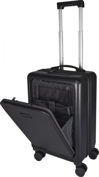 20? kufor Rover Pro s oddielom na notebook s predným otváraním a integrovaným USB portom. Vyrobený z recyklovaného plastu GRS odolného proti nárazom a kvalitnej RPET podšívky. TSA zámok pre hlavnú aj prednú priehradku, 360-stupňové dvojité kolieska.
