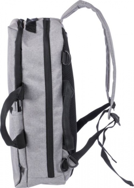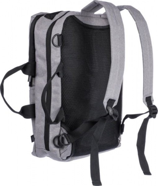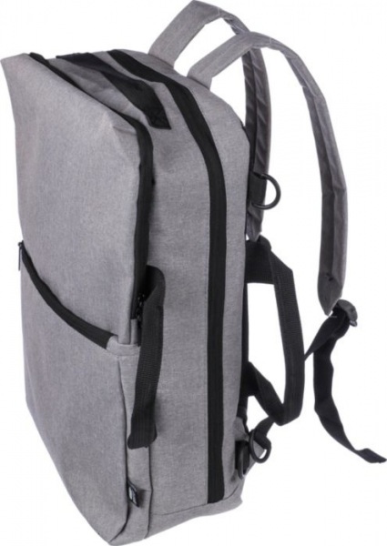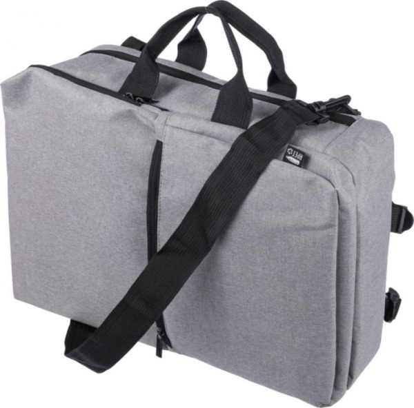 Batoh a taška na notebook (15 palcov) s pútkom navrchu, nastaviteľnými ramennými popruhmi a rúčkami na prenášanie. Priehradka na notebook na suchý zips a malá priehradka na zips. S vetranou polstrovanou zadnou stranou. Nosnosť 8 kg. Obsahuje štítok rPET.