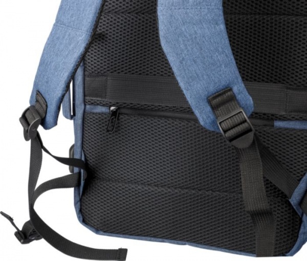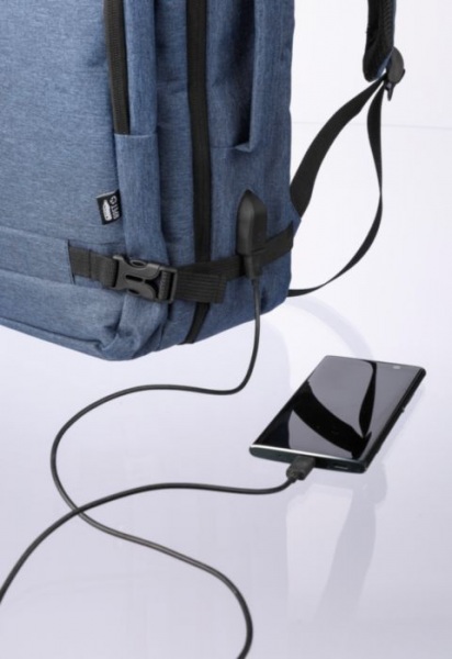 Batoh a taška na notebook (17 palcov) s pútkom na vrchu a po stranách. Priestor na notebook na suchý zips, vrecko proti krádeži a dve priehradky na zips. Odvetraná polstrovaná podložka, popruh na kufor, USB-A port na boku. Nosnosť 12 kg. Štítok RPET.