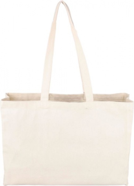 Nákupná taška z bavlny Oeko-Tex® (280 g/m2) s 10 cm klinom. Prírodná bavlna. Maximálna nosná hmotnosť: cca. 8 kg. Obsahuje štítok Oeko-Tex®.