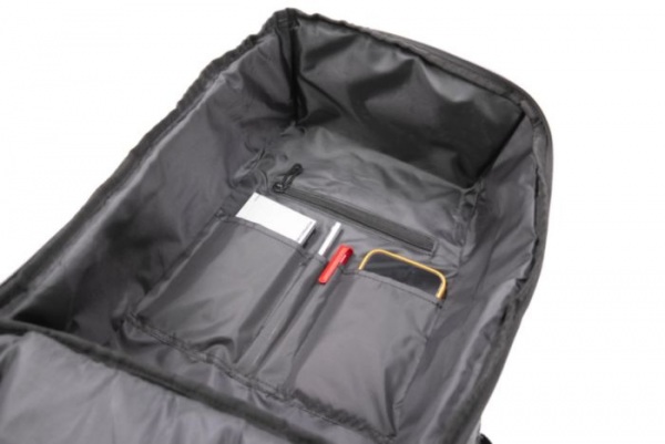Recyklované PET fľaše sa používajú na výrobu odolnej tkaniny Touring Fabric, ktorá odpudzuje vodu a škvrny. Jemné reflexné detaily a inteligentný prístupový úložný systém udrží. Ppolstrovaná priehradka na 16” notebook a praktické vrecká na ostatné veci.