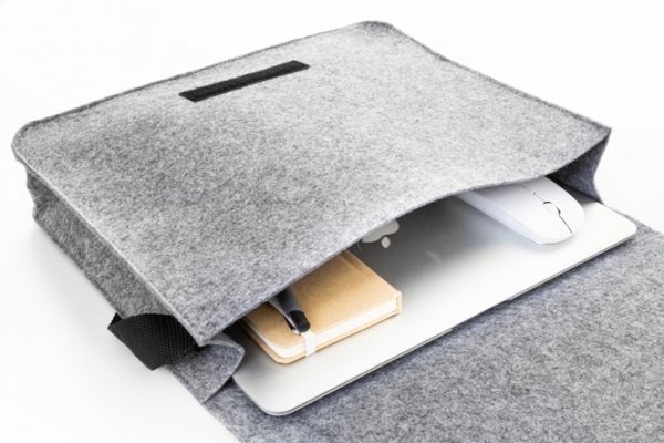 RPET plstená taška na notebook s nastaviteľným ramenným popruhom. Vhodné pre notebooky do 15". S výrazným štítkom RPET.