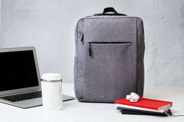Batoh RPET s hlavným oddielom na zips, 2 vreckami na zips, bočným vreckom a polstrovanou priehradkou na notebook (15"). S popruhom na vozík, polstrovaným chrbtom a ramennými popruhmi. Polyester 600D RPET, s výrazným štítkom RPET.