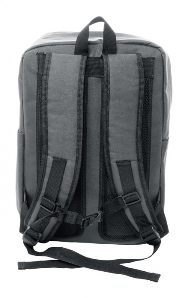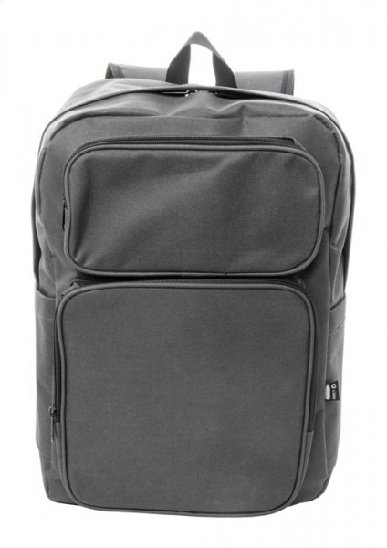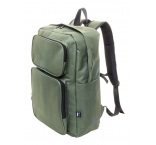 Batoh RPET s hlavným oddielom na zips, 2 prednými vreckami na zips, bočnými vreckami a polstrovanou priehradkou na notebook (15") a tabliet (10") S polstrovaným chrbtom a ramennými popruhmi. Polyester 600D RPET, s výrazným štítkom RPET.