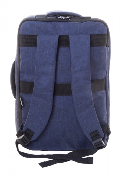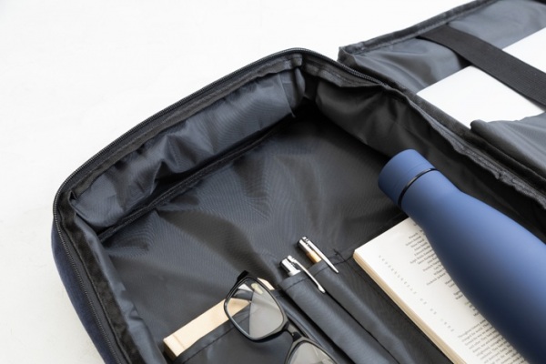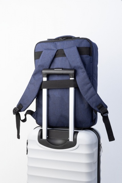 Dvojfunkčný RPET batoh a taška na dokumenty s priehradkou na zips a polstrovanou priehradkou na notebook (15"). S popruhom na vozík, polstrovaným chrbtom a ramennými popruhmi. Polyester 300D RPET, s výrazným štítkom RPET.