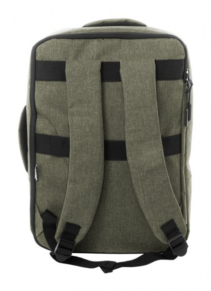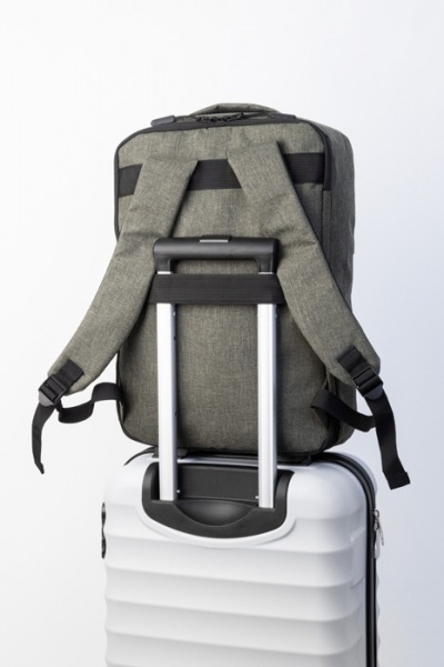 Dvojfunkčný RPET batoh a taška na dokumenty s priehradkou na zips a polstrovanou priehradkou na notebook (15"). S popruhom na vozík, polstrovaným chrbtom a ramennými popruhmi. Polyester 300D RPET, s výrazným štítkom RPET.