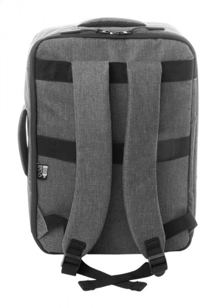 Dvojfunkčný RPET batoh a taška na dokumenty s priehradkou na zips a polstrovanou priehradkou na notebook (15"). S popruhom na vozík, polstrovaným chrbtom a ramennými popruhmi. Polyester 300D RPET, s výrazným štítkom RPET.