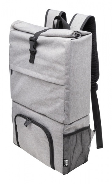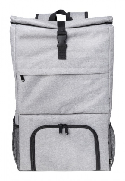 Rolltop RPET chladiaci batoh s PEVA polstrovanou priehradkou na zips na jedlo. S hlavnou priehradkou na sponu, predným vreckom na zips, bočnými sieťovanými vreckami a polstrovanými ramennými popruhmi.