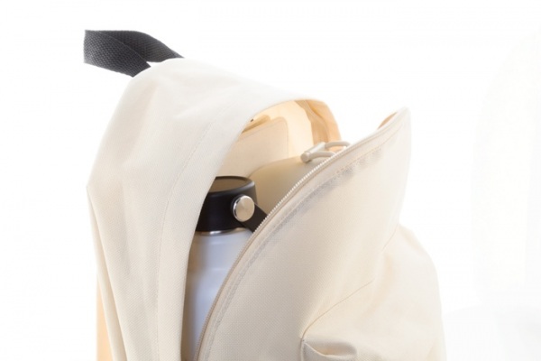 RPET batoh s hlavným priestorom na zips, predným vreckom na zips, polstrovaným chrbtom a ramennými popruhmi. Polyester 600D RPET, s výrazným štítkom RPET.