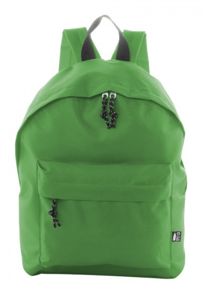 RPET batoh s hlavným priestorom na zips, predným vreckom na zips, polstrovaným chrbtom a ramennými popruhmi. Polyester 600D RPET, s výrazným štítkom RPET.