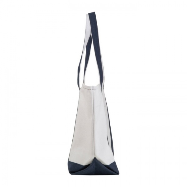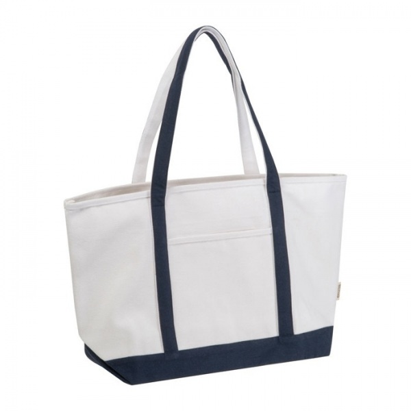 Robustná taška (730 g/m2) z recyklovanej bavlny s dvoma farebnými dlhými popruhmi a stabilným dnom. Univerzálne použitie na nákupy, pláž a pod.