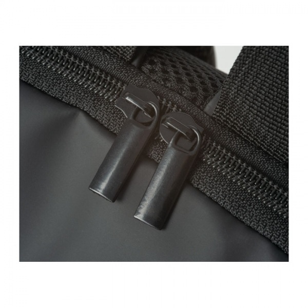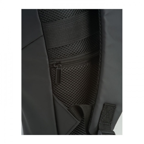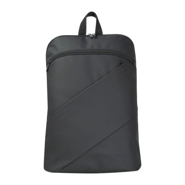 Batoh z umelej kože s dvoma šikmými lesklými zipsami na prednej strane, pútkom na zavesenie, dvoma pohodlnými ramennými popruhmi a tajným vreckom proti krádeži.