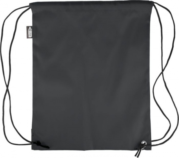 Batoh so sťahovacou šnúrkou s dvoma čiernymi PU rohmi na prednej strane a vnútorným šitím. Má čiernu nylonovú šnúru na každej strane, zapínanie na sťahovaciu šnúrku a jednu vnútornú priehradku. Kapacita: 5 l. Nosnosť: 7 kg. Vrátane štítku rPET.