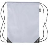 Batoh so sťahovacou šnúrkou s dvoma čiernymi PU rohmi na prednej strane a vnútorným šitím. Má čiernu nylonovú šnúru na každej strane, zapínanie na sťahovaciu šnúrku a jednu vnútornú priehradku. Kapacita: 5 l. Nosnosť: 7 kg. Vrátane štítku rPET.