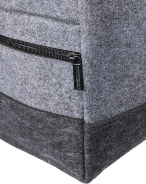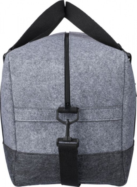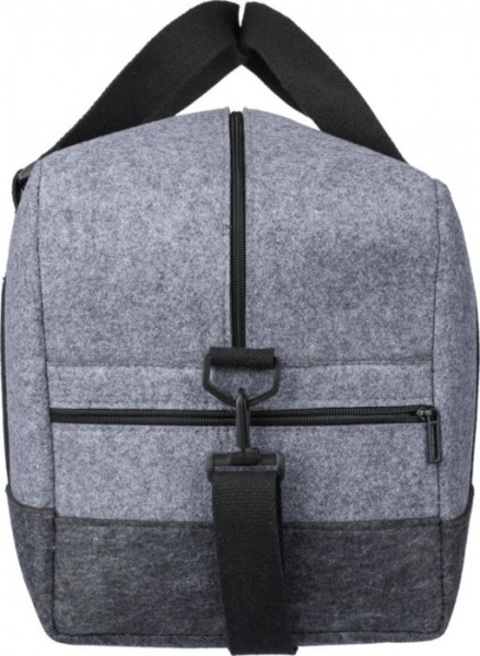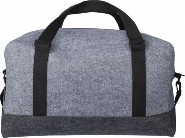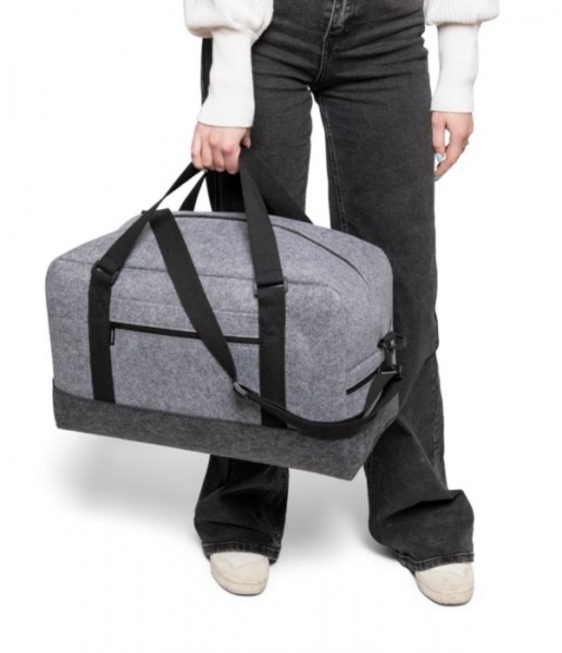 Športová taška z RPET vyrobená z plsti s plátennými rúčkami a nastaviteľným ramenným popruhom. Má veľkú priehradku na zips a malú priehradku na zips na prednej strane. Vrátane štítku rPET. Kapacita: 30 l. Nosnosť: 10 kg.