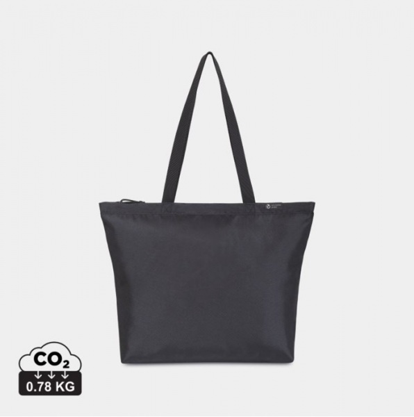 Moderná taška je vyrobená z recyklovaných PET fliaš. Obsahuje priestrannú hlavnú priehradku so zipsovým uzatváraním a vnútorné vrecko na fľašu s nápojom.