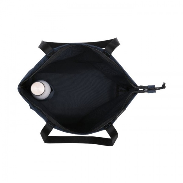 Moderná taška je vyrobená z recyklovaných PET fliaš. Obsahuje priestrannú hlavnú priehradku so zipsovým uzatváraním a vnútorné vrecko na fľašu s nápojom.