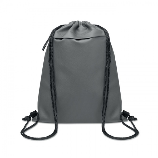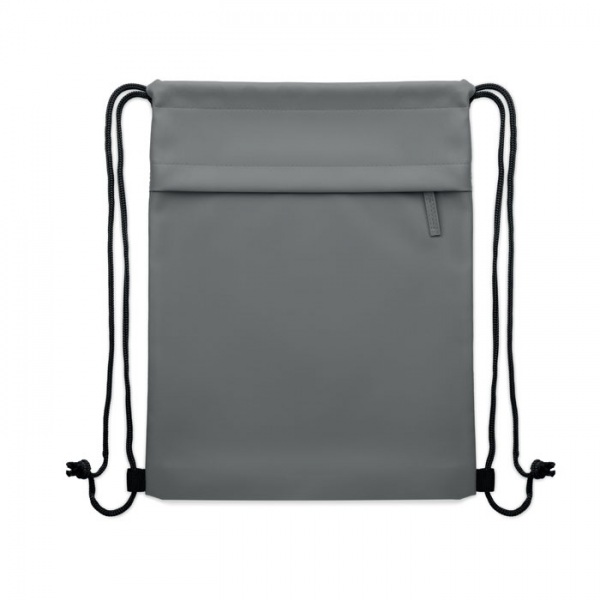 Taška so sťahovacou šnúrkou s PU záterom z polyesteru 600D RPET a podšívkou z polyesteru 190T RPET. Predné vrecko na zips.