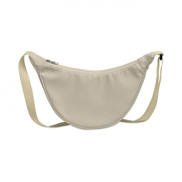Polmesiacová crossbody kabelka z materiálu Oxford 400D a podšívky z RPET 210D. Jedno hlavné vrecko na zips a 2 vnútorné vrecká.