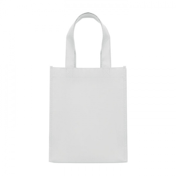 Malá darčeková taška z netkanej RPET tkaniny s krátkymi rúčkami a výstuhami.
