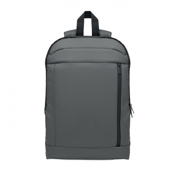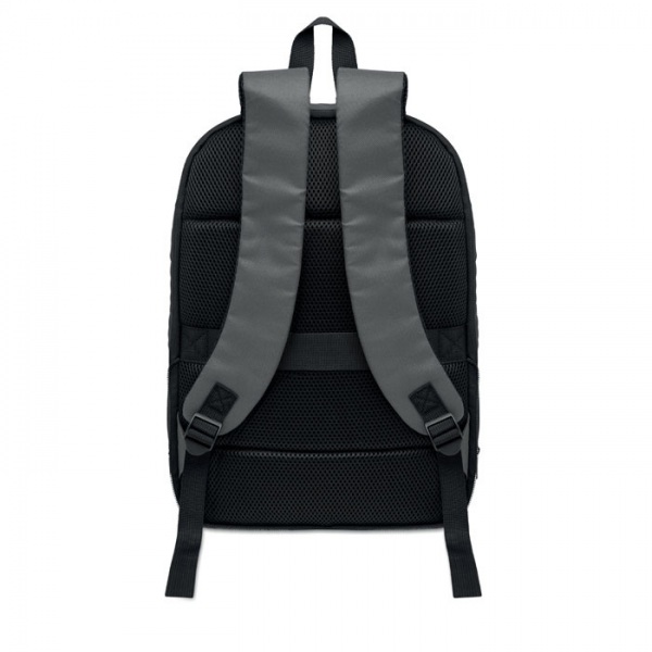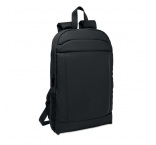 Rozšíriteľný 16-palcový počítačový batoh z 600D RPET polyesteru s PU záterom na prednej strane a podšívkou z RPET polyesteru. Skryté vrecko na zips a polstrovaná priehradka na notebook, predná priehradka, sieťovaný chrbát a popruh na kufor.