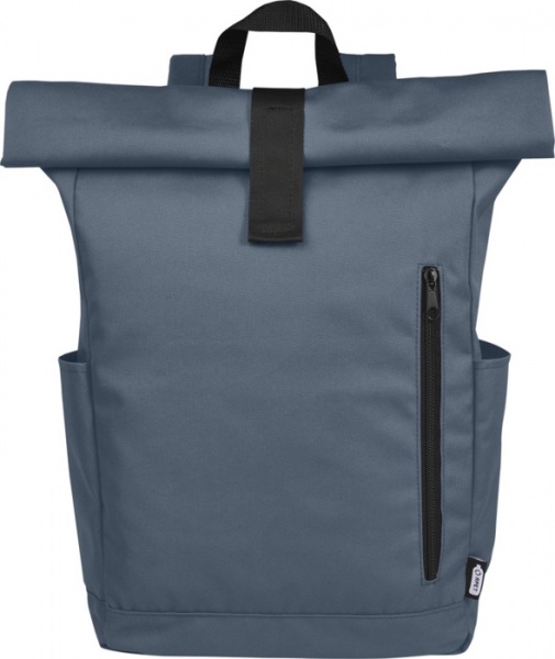 Praktický, pevný a vodoodpudivý rolovací batoh s veľkou vnútornou priehradkou s priehradkou na 15,6” notebook, predným vreckom na zips a 2 bočnými vreckami. Polstrovaná zadná časť, nastaviteľné a vystužené ramenné popruhy, pútko na prenášanie a praktické