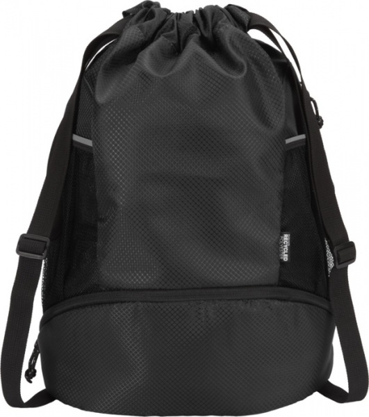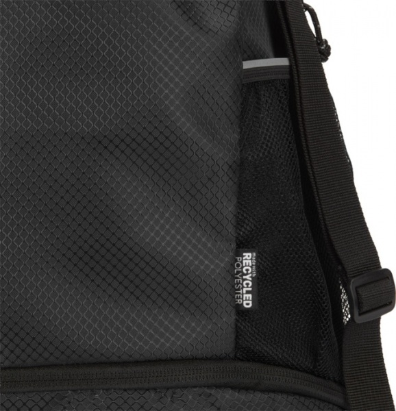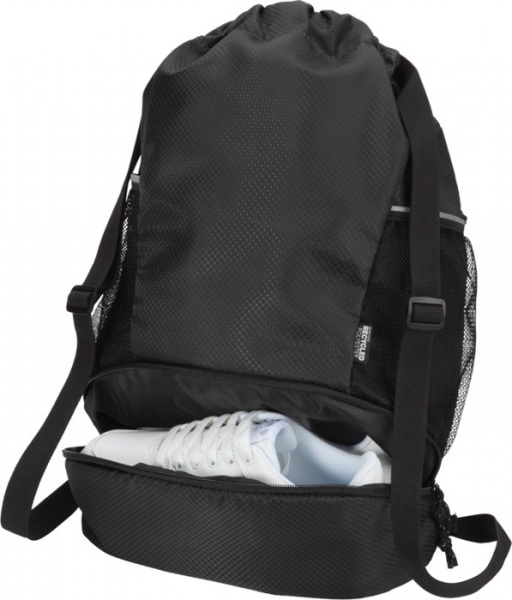 Športová taška so sťahovacou šnúrkou s vodoodpudivou úpravou. Priestranný hlavný oddiel, samostatná spodná priehradka na topánky, dve bočné sieťované vrecká s reflexnými detailmi, skryté vrecko na zips a nastaviteľné ramenné popruhy.