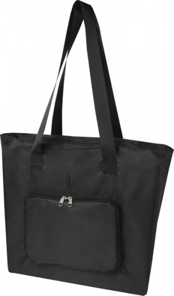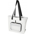 Túto ľahkú tašku je možné zložiť do kompaktného puzdra s pútkom. Má hlavnú priestrannú priehradku na zips, predné vrecko na zips a dve dlhé uši z kvalitného hladkého popruhového materiálu. Vyrobené z RPET bez obsahu PVC. Objem: 16 litrov.