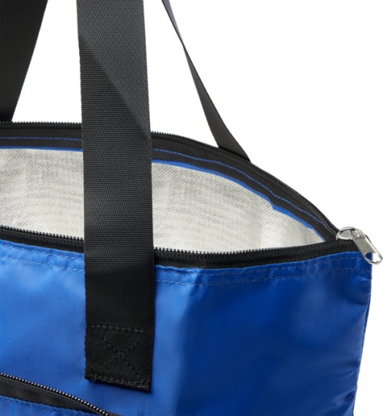Túto odolnú chladiacu tašku je možné zložiť do kompaktného puzdra s pútkom. Má hlavnú priehradku na zips s hliníkovou fóliou, predné otvorené vrecko a dlhé uši z kvalitného hladkého popruhového materiálu.Vyrobené z RPET bez obsahu PVC. Objem: 15 litrov.