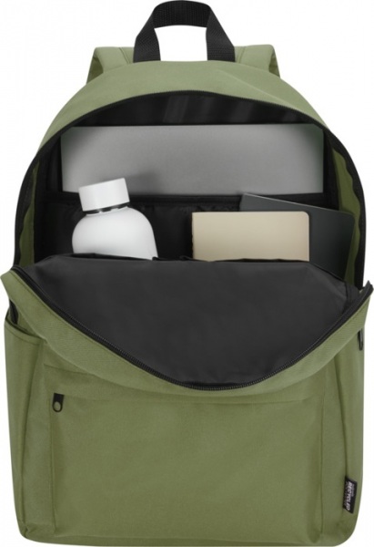 Mestský batoh na notebook z vodoodpudivého RPET GRS. Objem 16 litrov, polstrovaná priehradka pre notebooky do uhlopriečky 14?. Organizačné vrecká,dve bočné vrecká a predné vrecko na zips.
