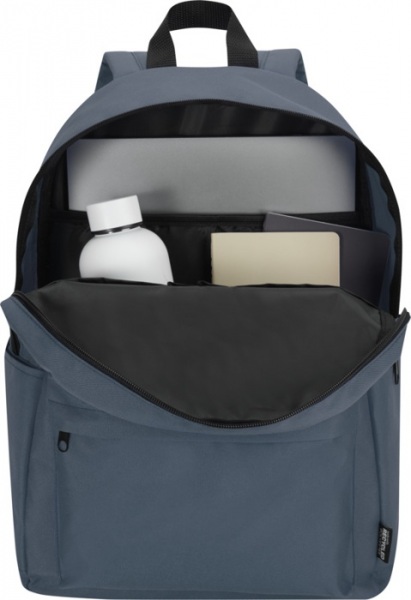 Mestský batoh na notebook z vodoodpudivého RPET GRS. Objem 16 litrov, polstrovaná priehradka pre notebooky do uhlopriečky 14?. Organizačné vrecká,dve bočné vrecká a predné vrecko na zips.