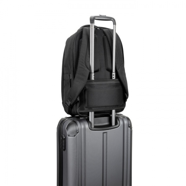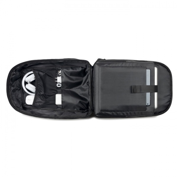 Vodeodolný batoh, hlavná priehradka s polstrovaným vreckom na notebook do 17,3" a tablet do 10,5", bočné vrecká a predné vrecko. Polstrovaná horná rukoväť, chrbtová časť s extra polstrovaním a popruh na kufor s vreckom na drobnosti. Objem 20 l.