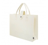 Nákupná taška z RPET plsti s klinom, zapínaním na gombíky a krátkymi uchami s výraznou etiketou z RPET.