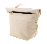 Chladiaca taška z recyklovaného plátna s rolovacím vrchom, predným vreckom, hliníkovou výplňou a zapínaním na suchý zips. 70 % recyklovanej bavlny a 30 % polyesteru RPET. S výrazným štítkom z recyklovanej bavlny.