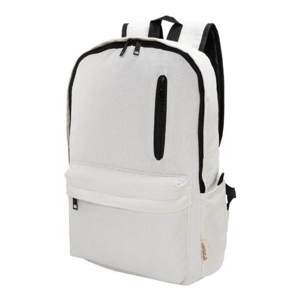 Recyklovaný plátený batoh s hlavnou priehradkou na zips, polstrovanou priehradkou na notebook (15"), 2 prednými vreckami na zips, bočnými vreckami, popruhom na kolieskach, polstrovaným chrbtom a ramennými popruhmi.