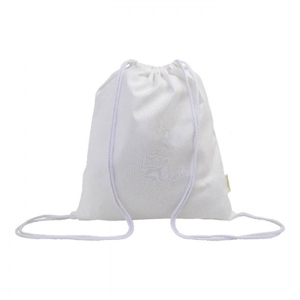 Vak so sťahovacou šnúrkou zo 70% recyklovanej bavlny a 30% polyesteru RPET, 140 g/m2. S výrazným štítkom z recyklovanej bavlny.