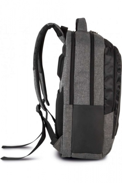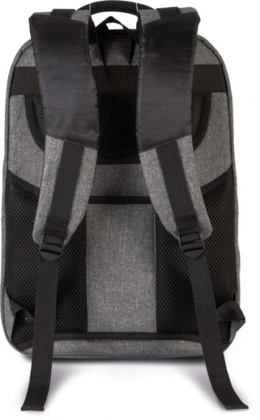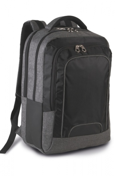 Batoh s kontrastnými polyesterovými vložkami. Priehradka s 3 zipsami a polstrovaným puzdrom na 15-palcový notebook. Polstrovaná horná rukoväť, chrbát a ergonomické ramenné popruhy. Zadná časť s vozíkovým puzdrom na nasadenie na rukoväť kufra