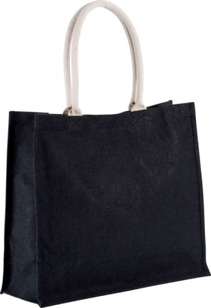 Plážová taška/nákupná taška z jutovej tkaniny. Bavlnené uši. Zapínanie a suchý zips.