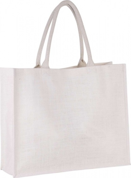 Plážová taška/nákupná taška z jutovej tkaniny. Bavlnené uši. Zapínanie a suchý zips.