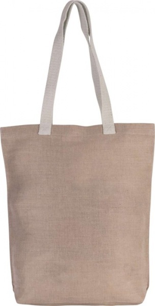 Veľká nákupná taška z jutového plátna a bavlny (juco) s klinom a 70 cm bavlnenými ušami vo farbe ecru