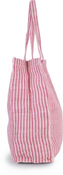 Štvorcová nákupná taška s farbenými tkanými pruhmi z juty a bavlny (juco). Vnútorné bavlnené vrecko na zips. 55 cm dlhé uší z rovnakej tkaniny
