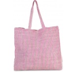 Štvorcová nákupná taška s farbenými tkanými pruhmi z juty a bavlny (juco). Vnútorné bavlnené vrecko na zips. 55 cm dlhé uší z rovnakej tkaniny