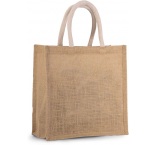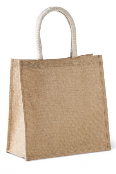 Jutová plátenná taška s bavlnenými ušami. Dostupné aj v malej a strednej veľkosti. Farba natural: Certifikát STANDARD 100 podľa OEKO-TEX® č. CQ 1164/1, IFTH