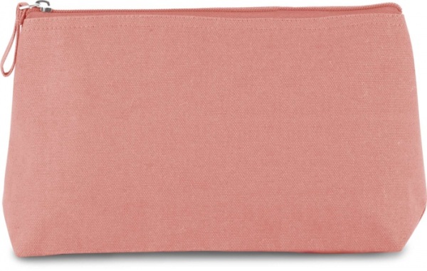 Toaletná taška s klinom z bavlneného plátna laminovaného polyuretánom. Zips a sťahovanie v rovnakej farbe ako taška. Certifikát STANDARD 100 podľa OEKO-TEX® č. CQ 1164/1, IFTH