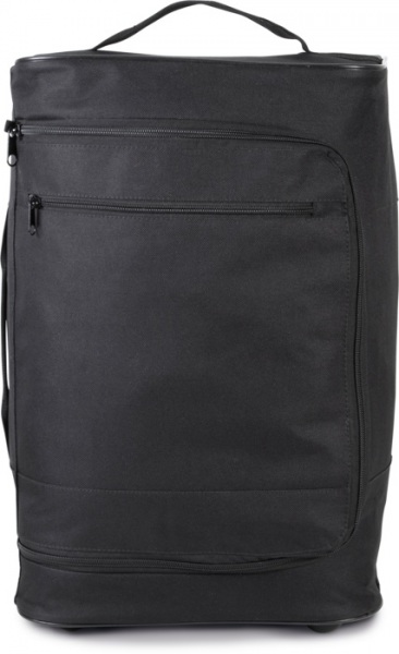 Veľký kufrík na kolieskach zo 600D polyesteru, Polotuhá základňa so štruktúrovanou ochrannou vrstvou a plastovými nožičkami na vzpriamené státie. Jedna veľká priehradka s prístupom na zips zhora. Vrecko na zips na ľahký prístup pre zdobenie. Bočná rukoväť