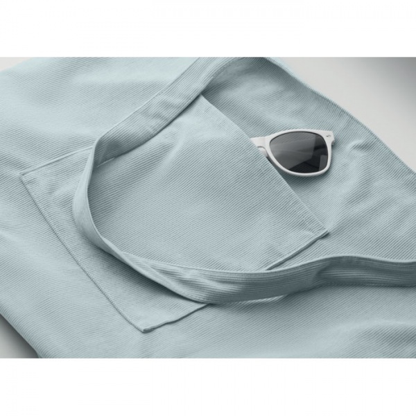 Veľká nákupná/plážová taška z polyesterového menčestru so zapínaním na zips zhora, otvoreným predným vreckom a vnútorným vreckom.