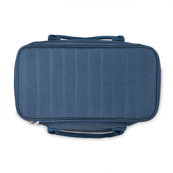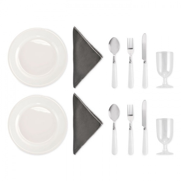 Chladiaca taška na piknik z polyesteru 600D RPET pre 2 osoby s predným vreckom na zips vrátane príborov z nehrdzavejúcej ocele, 2 tanierov z PS, 2 pohárov z PS a 2 bavlnených obrúskov. Objem: 18 l