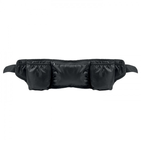 Športová bežecká a turistická ľadvinka vyrobená z polyesteru 420D RPET so sieťovaným chrbtom. Má dve priehradky na fľaše, centrálne vrecko na zips a nastaviteľný popruh. Ľahká a odolná.